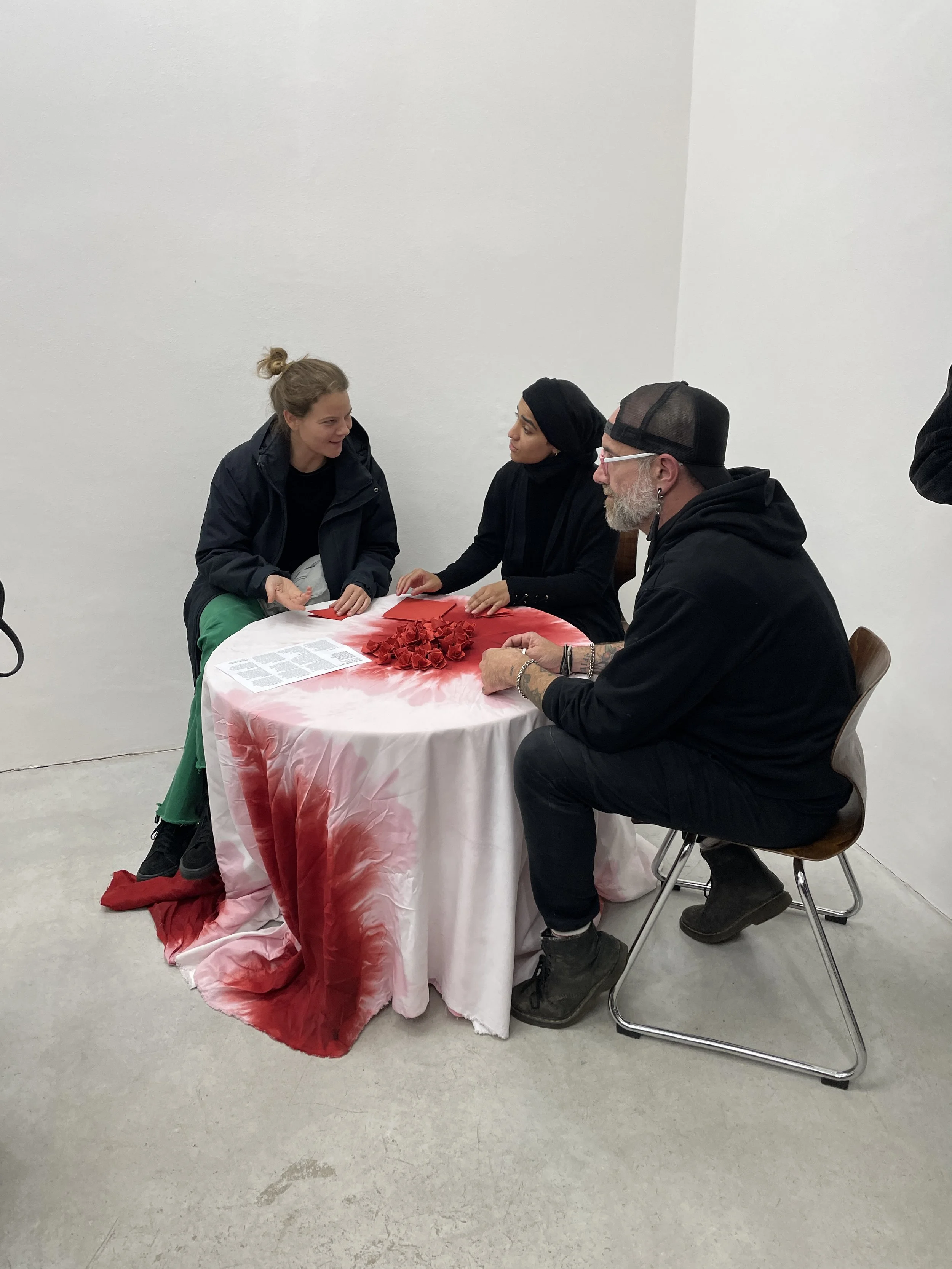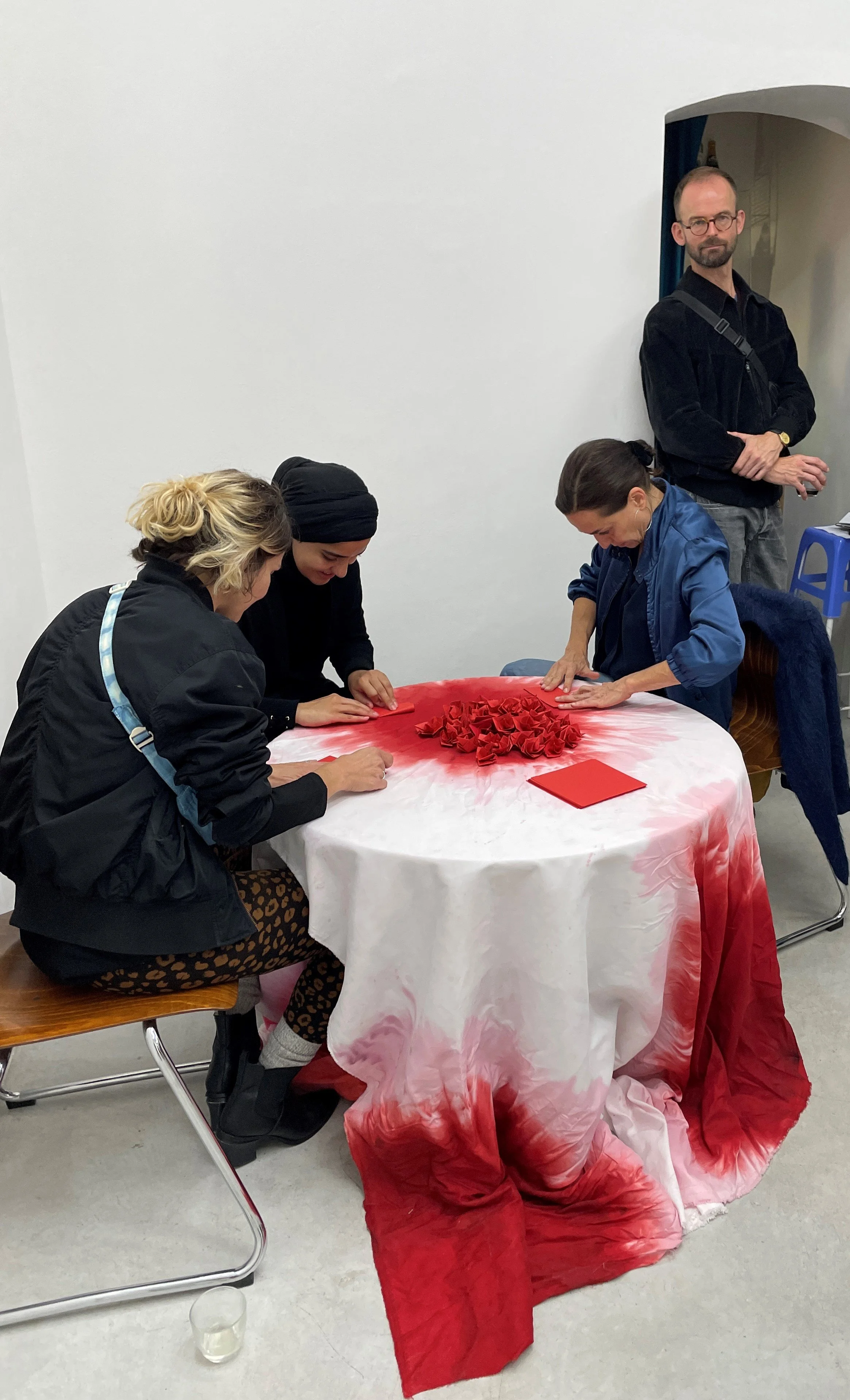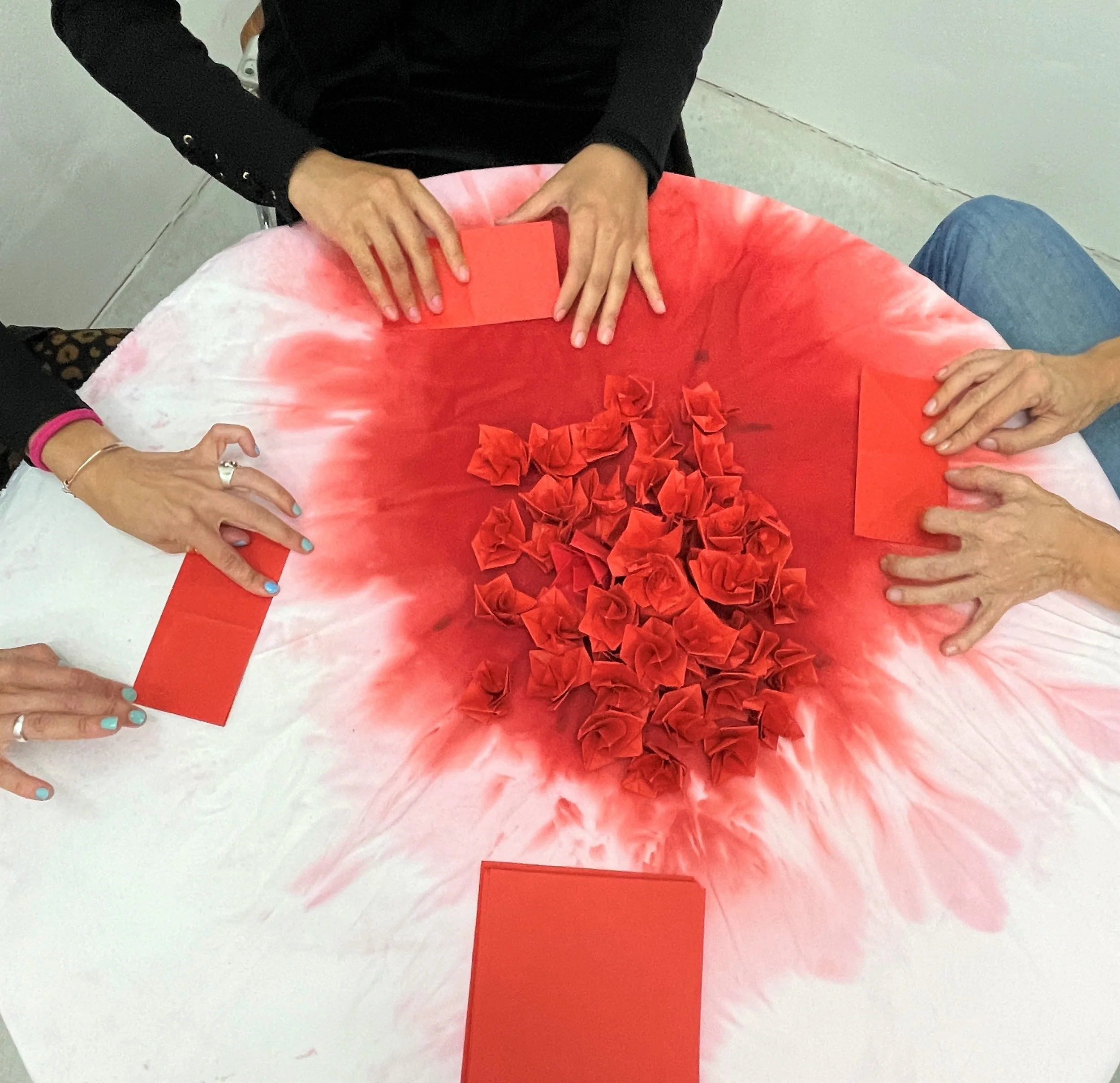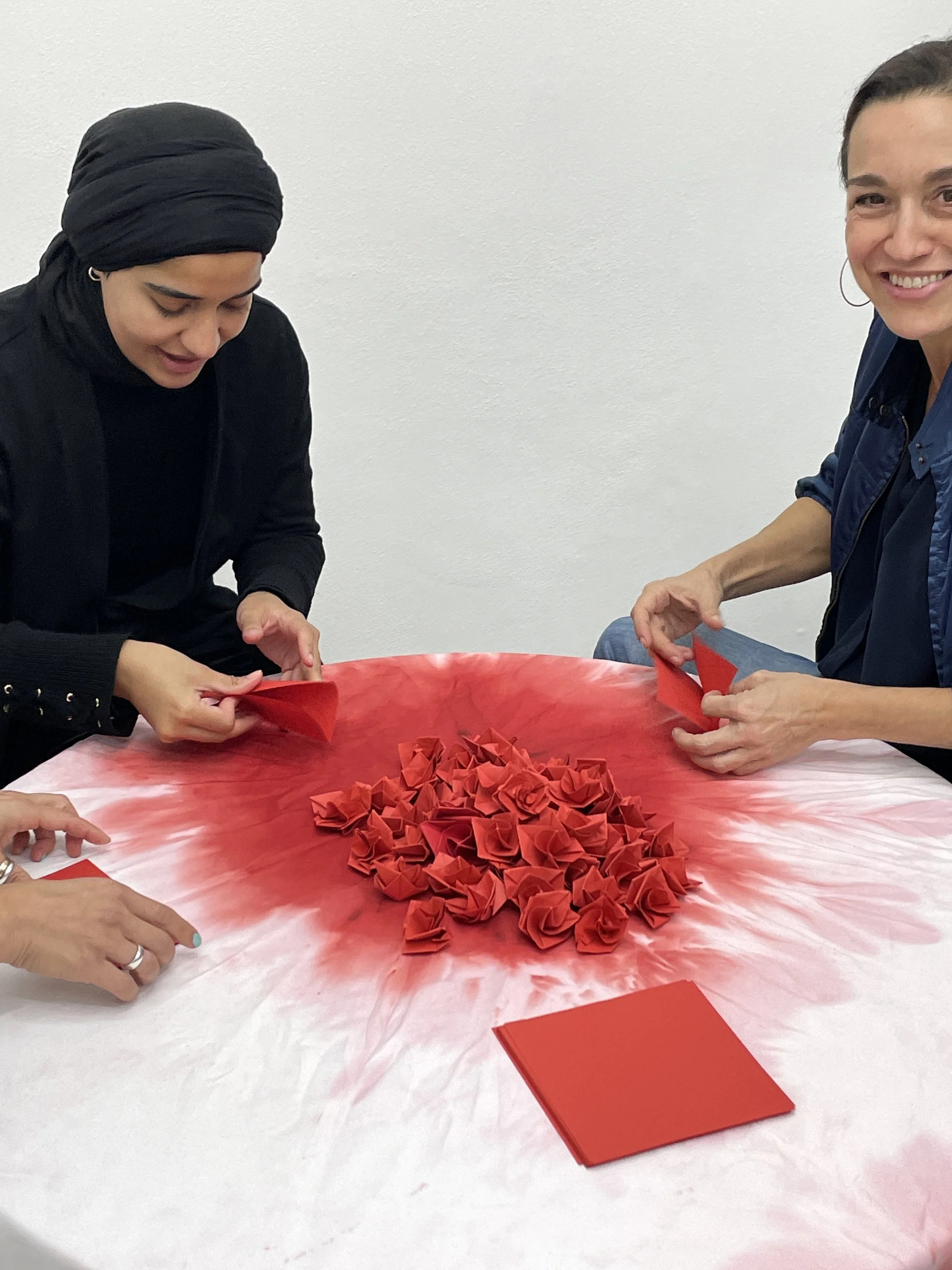 WITH LOVE - Meditation of Roses Interactive Performance, 2022 Created for PICTUREBERLIN Residency, September 2022. On July 6, 2022, my family and I grieved the devastating loss of my khala (aunt), who died from multiple gunshot wounds inflicted earlier that day by her ex-husband. This project channels that profound grief into an act of remembrance. As I folded origami roses, I invited my audience into my khala’s story—sharing memories of her life and spirit. The round table’s closeness fostered an atmosphere of deep intimacy, where others began to open up about their own experiences with grief and loss. Together, we honored the relationships in our lives that have offered us care, warmth, and enduring connection.