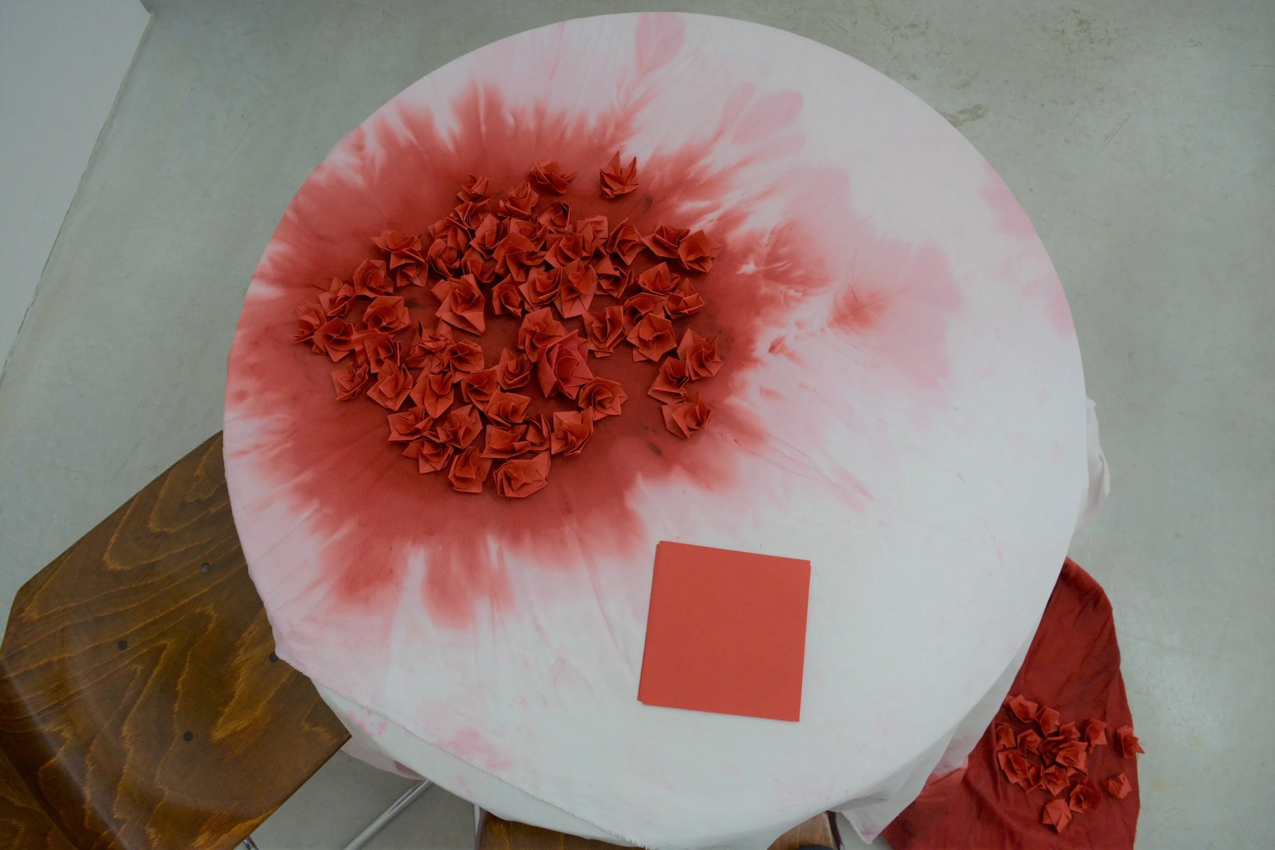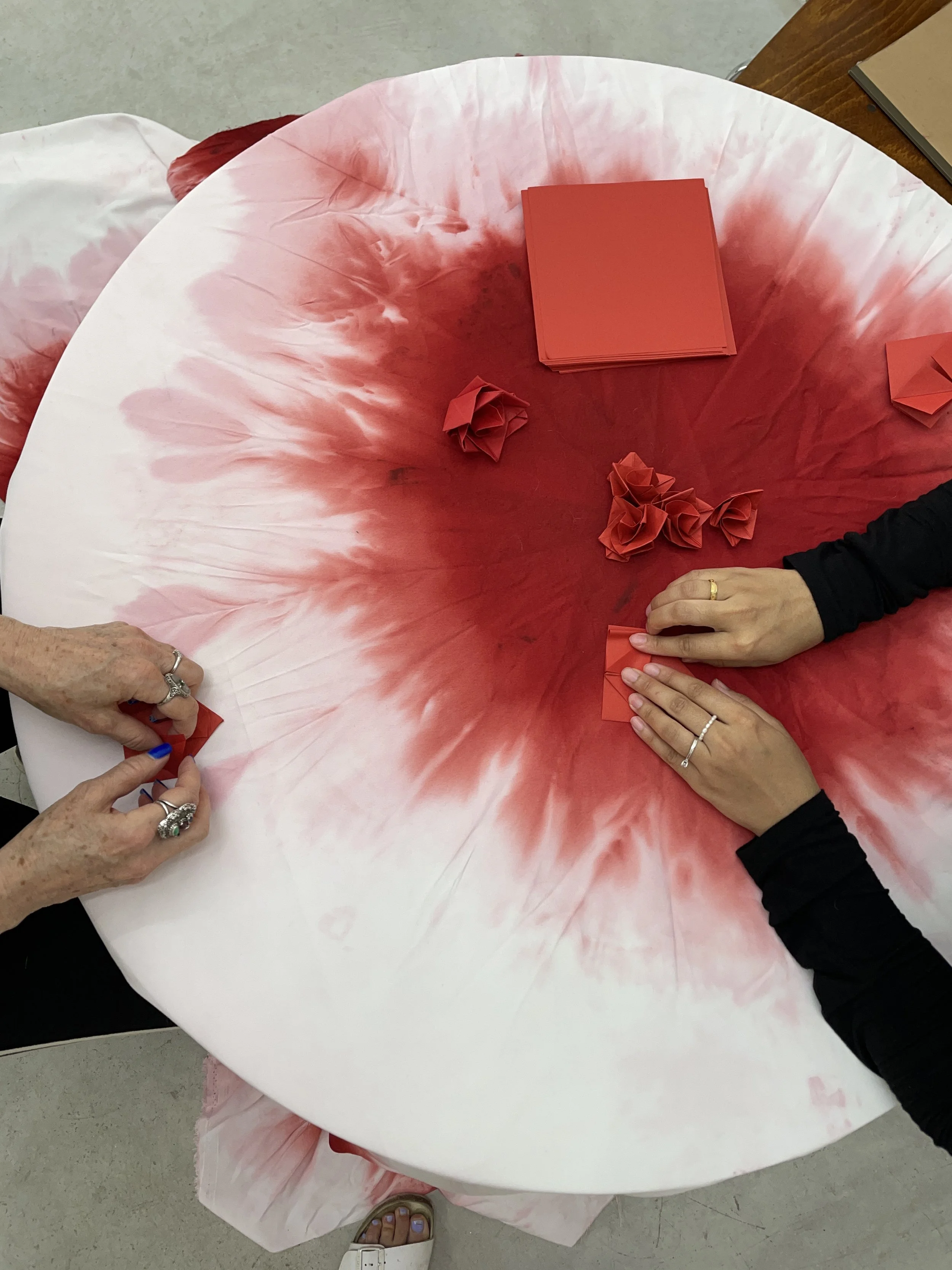 The performance ran throughout the exhibition where we collectively created over a hundred origami roses.